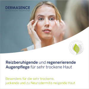 Die DERMASENCE Vitop forte Augenpflege wurde speziell entwickelt für sehr trockene, juckende und zu Neurodermitis neigende Haut im Augenbereich. Die einzigartige Vitop-Formulierung regeneriert Ihre Hautbarriere mit hautidentischen Ceramiden und lindert Juckreiz, Rötungen und Irritationen durch eine beruhigende Wirkung von Bisabolol. Durch die intensive Feuchtigkeit von Hyaluron wird Ihre Haut zudem hydratisiert und geschützt. Verlängern Sie schubfreie Phasen durch regelmäßige Anwendung. Parfümfrei und dermatologisch getestet.
