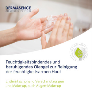 Entdecken Sie das DERMASENCE Hyalusome Reinigungsgel: Das hydrophile Oleogel zur Reinigung feuchtigkeitsarmer Haut ist schnell und einfach anzuwenden und sorgt für eine weiche und entspannte Haut. Es ist mit Glycerin angereichert, um vorzeitigen Hautalterungserscheinungen entgegenzuwirken und die Haut mit Feuchtigkeit zu versorgen. Das feuchtigkeitsbindende Reinigungsgel entfernt Make-up und Verschmutzungen schonend ohne die Haut auszutrocknen und verbessert den Feuchtigkeitsgehalt der Hornschicht. Die pflanzlichen Öle beruhigen die Haut und mindern Spannungsgefühle nach der Reinigung. Es enthält keine Seife. Hautfreundlich parfümiert und dermatologisch getestet.